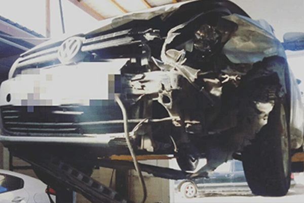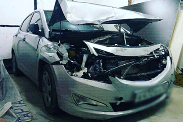 Сильный удар в отбойник. Основные работы составили по отделу слесарного цеха. Сильно пострадала подвеска, ходовая часть автомобиля. Были подобраны и заказаны все необходимые запчасти, в том числе кузовные элементы. После слесарных работ, произведены подготовительно-окрасочные работы, заменено лобовое стекло.