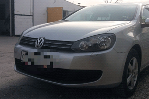 Автомобиль после правого бокового удара. Пострадал бампер, крыло. Заменена фара и колесный диск.